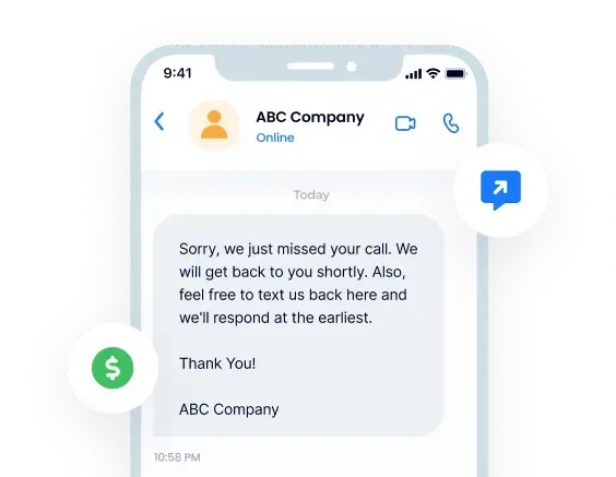 Engage callers immediately with auto-missed call text back to keep the conversation alive so you never lose business because you were unavailable.